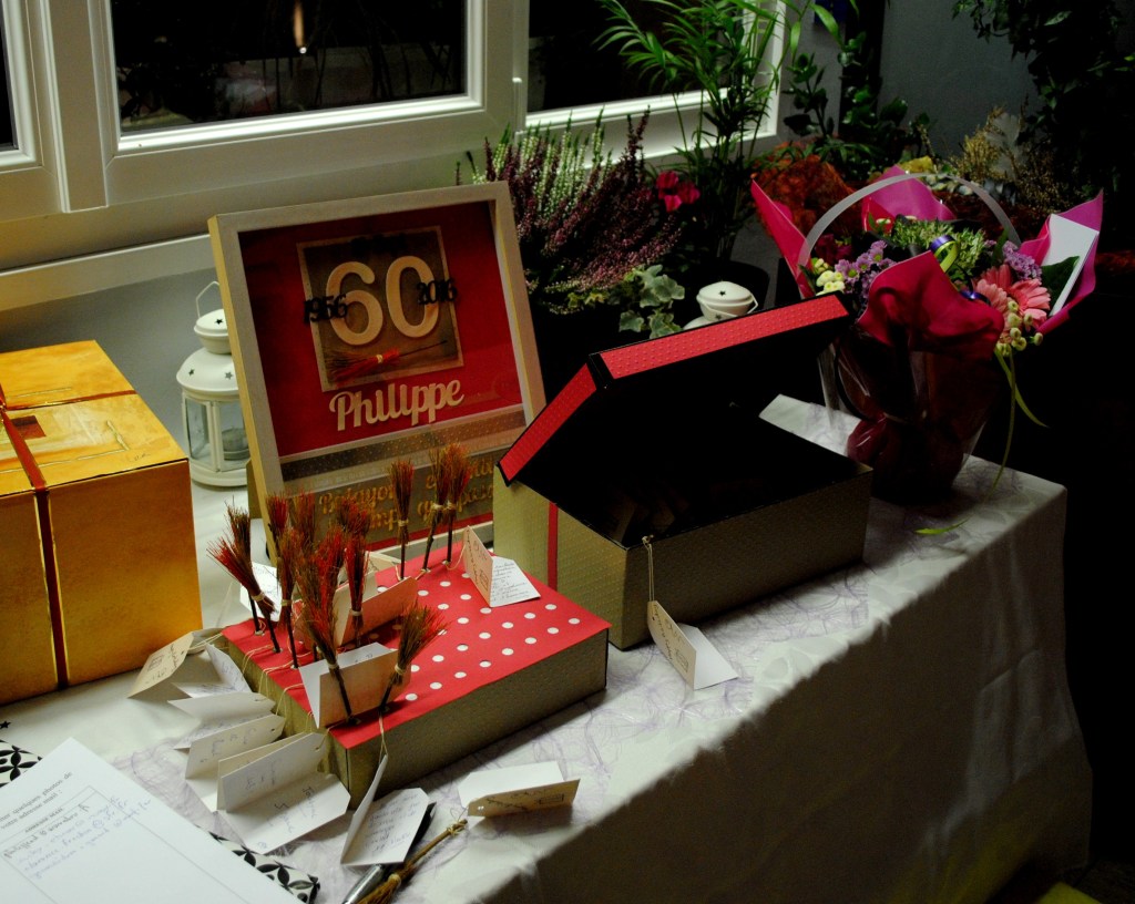 60 ans… un tableau et 60 balais avec étiquettes pour laisser un mot :
