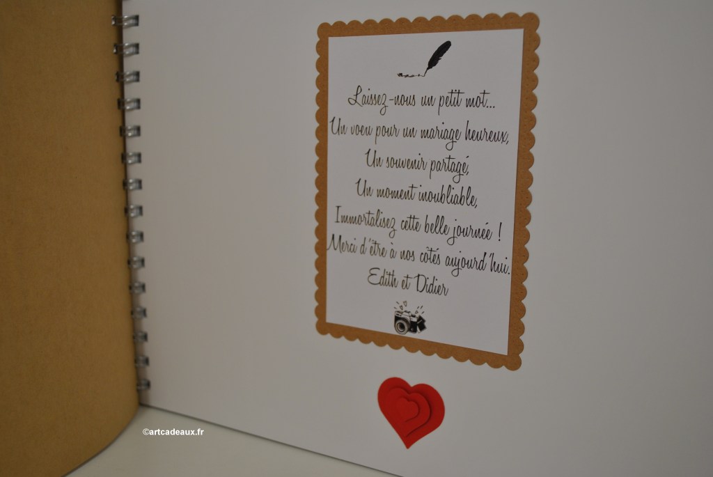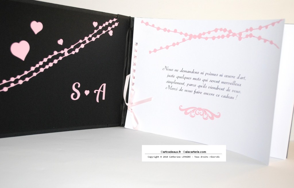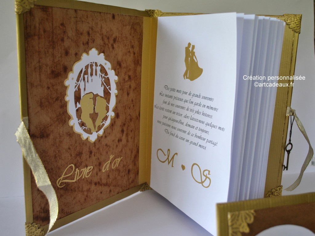 Les tarifs sont variables en fonction des matériaux utilisés et de la complexité des modèles. Vous pouvez souhaiter une page de garde avec un texte personnalisé, des pages décorées, un cadre pour une photo, des enveloppes insérées … ou vouloir un livre d’or sobre avec des feuilles vierges. Je m’adapte à votre budget, n’hésitez pas à me contacter pour un devis ICI.