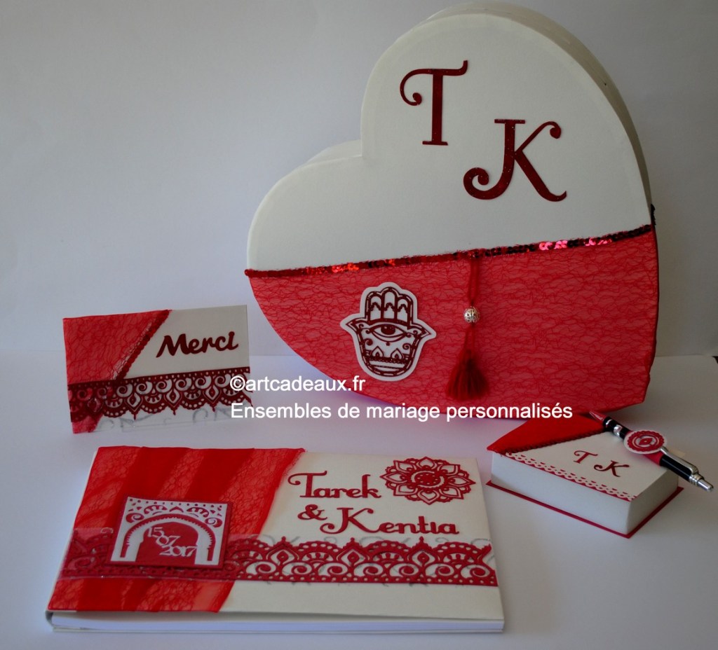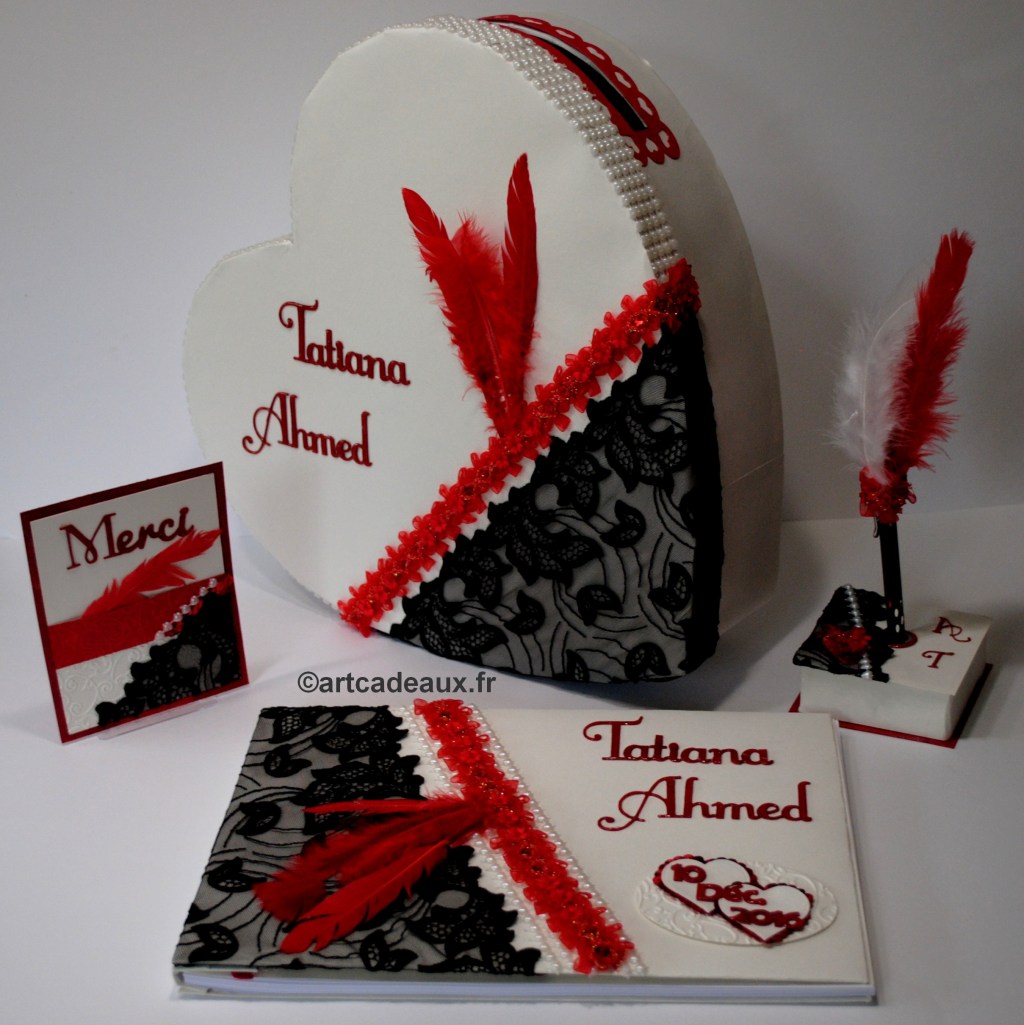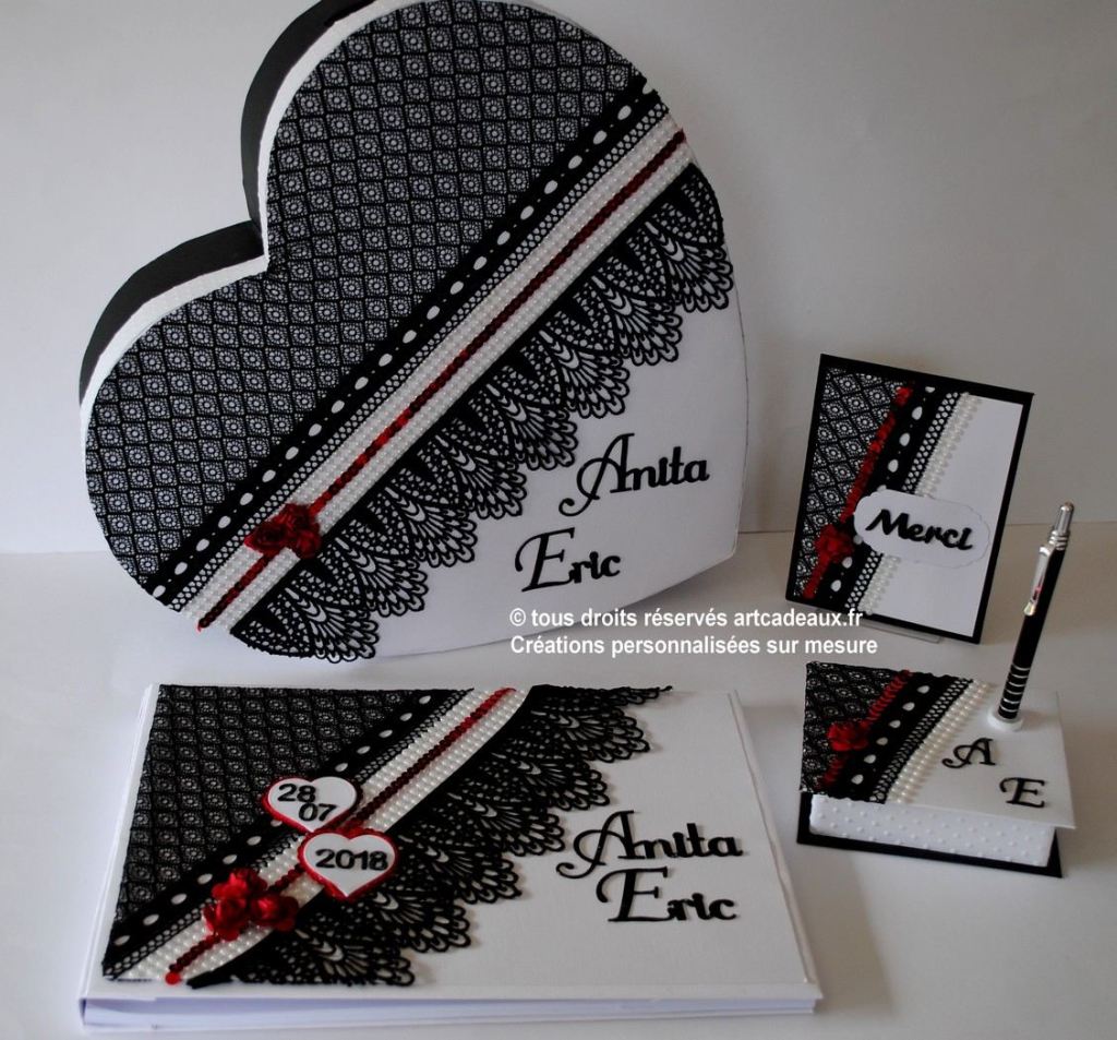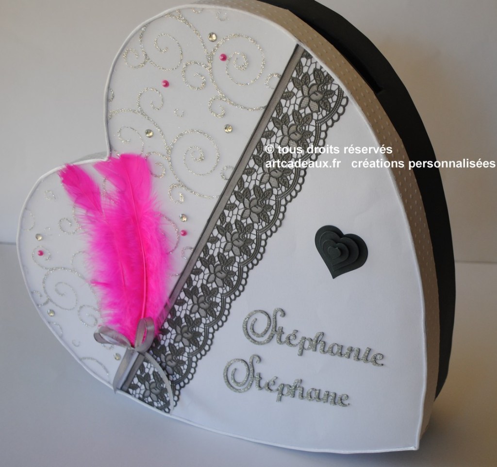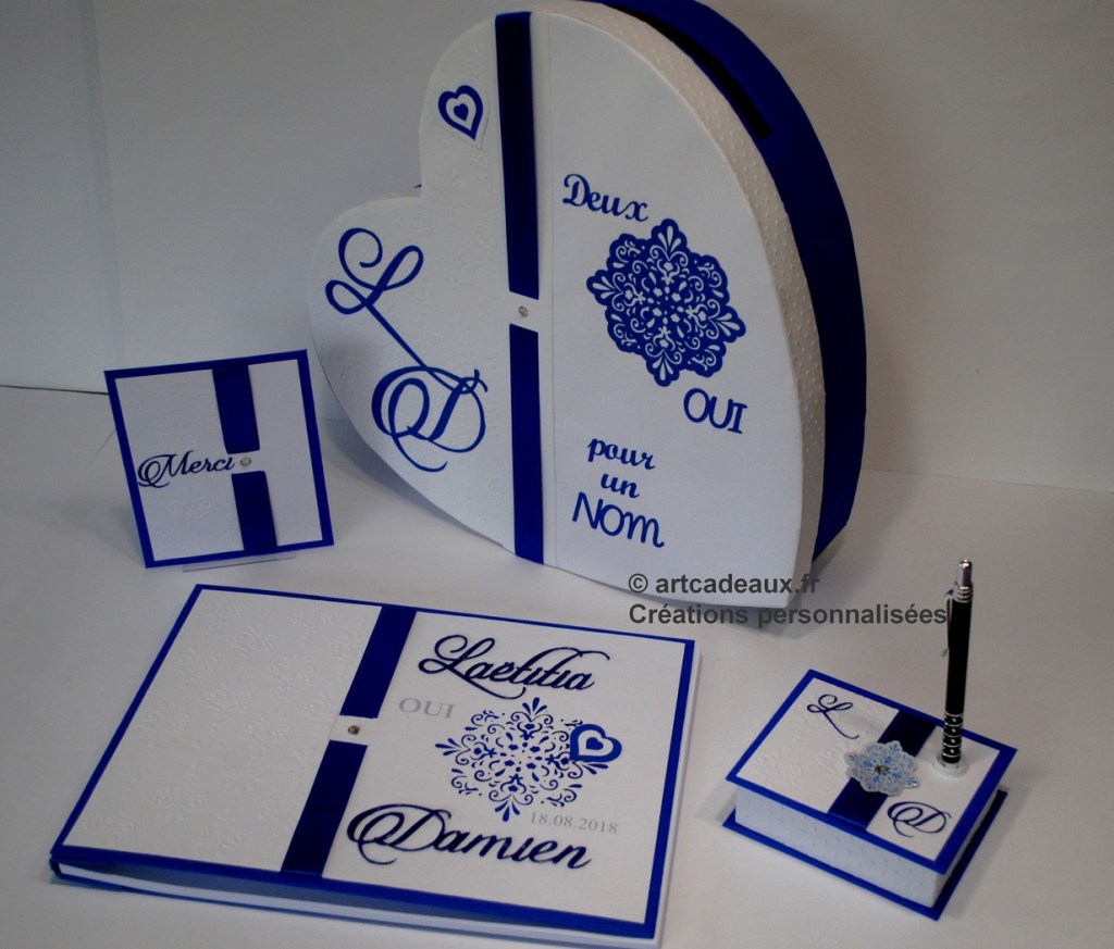Pour que l’harmonie de votre décoration de salle soit parfaite, créons votre urne à enveloppes dans le thème de votre faire-part et de votre livre d’or.